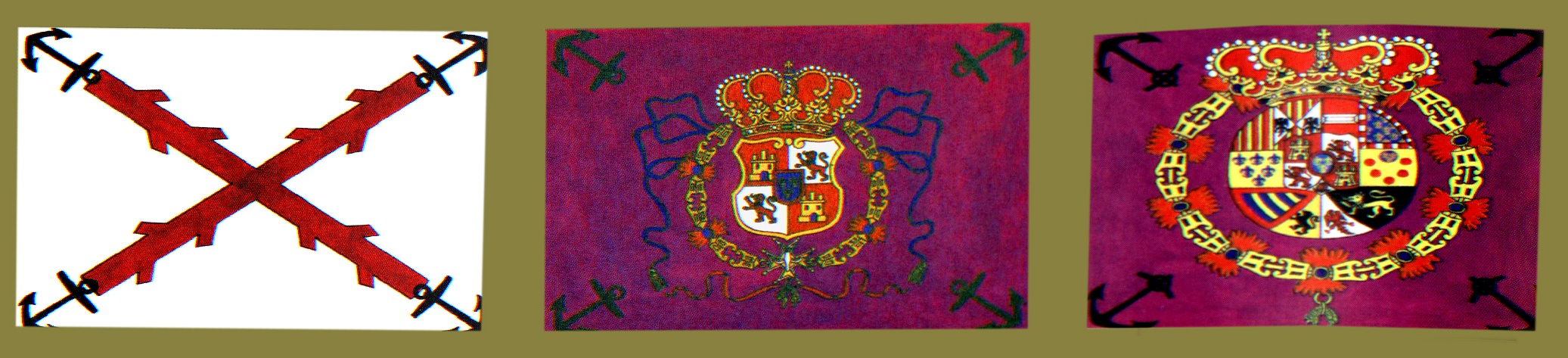 Con la llegada de los Borbones se establecen normas más estrictas. Así, en la Real Orden, ya citada, de 1717 por la cual se crea el Cuerpo de Batallones de Marina, se determina en materia de banderas lo siguiente: