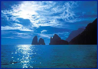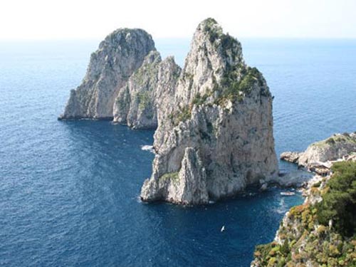 Su naturaleza calcárea ha facilitado que durante siglo el mar haya esculpido sus acantilados, generando caprichosas formas. Los farallones de Capri (faraglioni en italiano) son de los más bellos del mundo y se han convertido en los protagonistas del logotipo turístico de la isla.