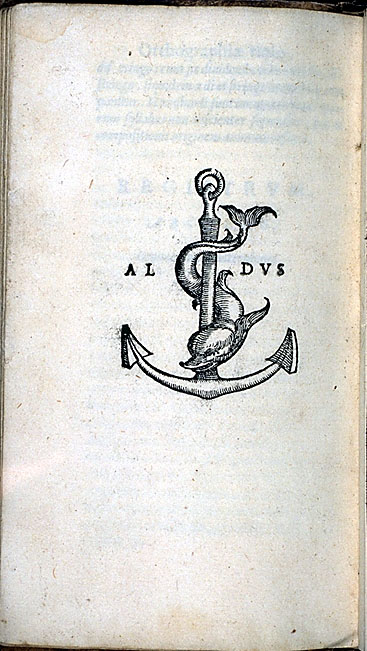 Aquí podemos ver el colofón de una edición de Aldo Manuzio, que adopta el jeroglífico como propio desde 1501: