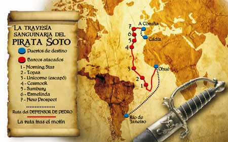 A partir de este momento da comienzo la historia de quien será conocido como el “último pirata del Atlántico”. Como capitán de El Defensor de Pedro, Benito Soto se dedicó a surcar los mares destrozando y saqueando todo lo que encontraba en su camino, especialmente barcos ingleses, convirtiéndose en un pirata temido en el Atlántico.