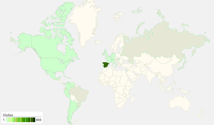 En este gráfico, que proporciona la propia herramienta, también pueden apreciarse la multiplicidad de visitas recibidas a lo largo del orbe terrestre.