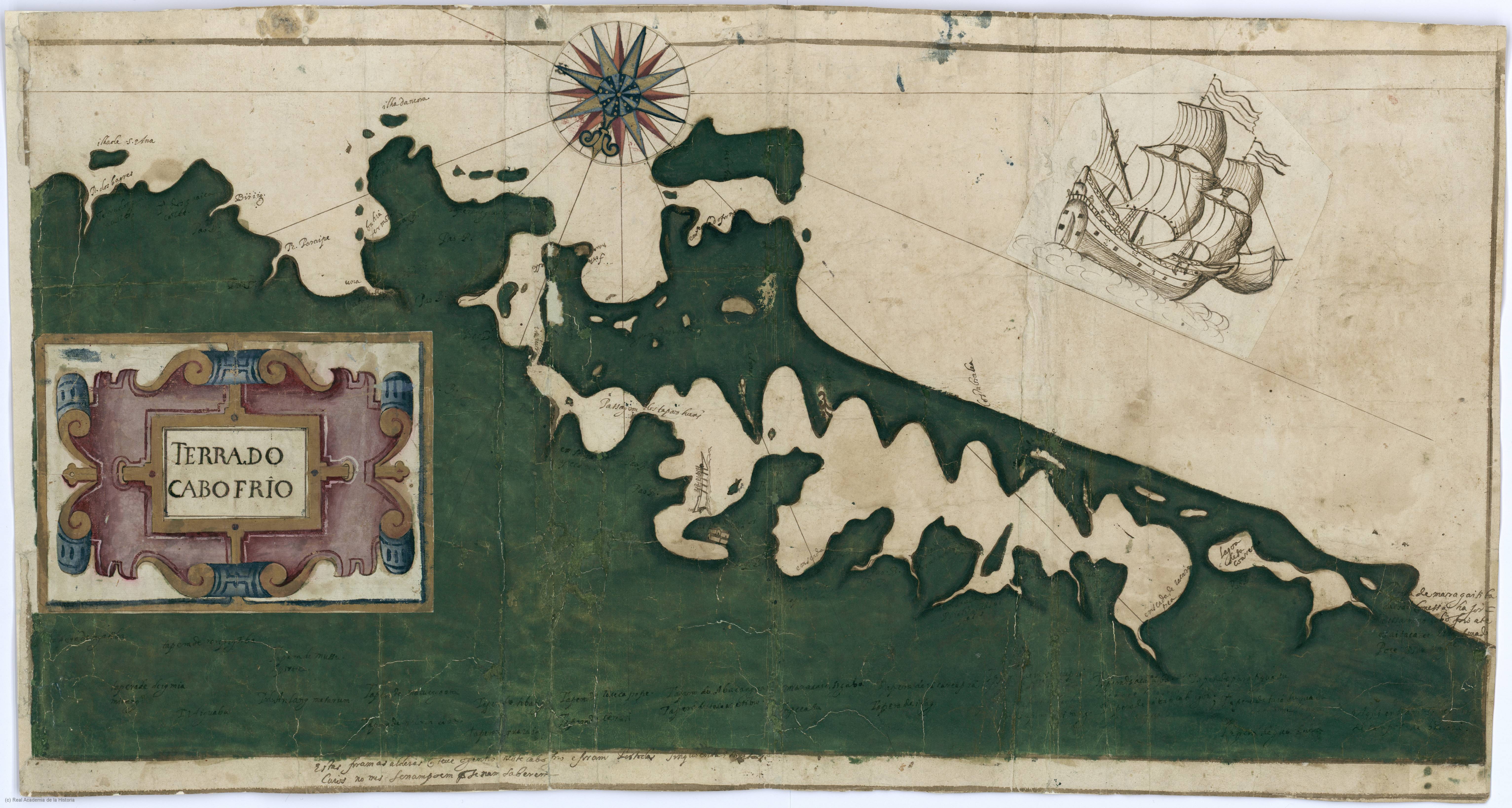– Múltiples cartas náuticas de los siglos XVI, XVII y XVIII, de casi toda América, como la que se puede ver aquí abajo.