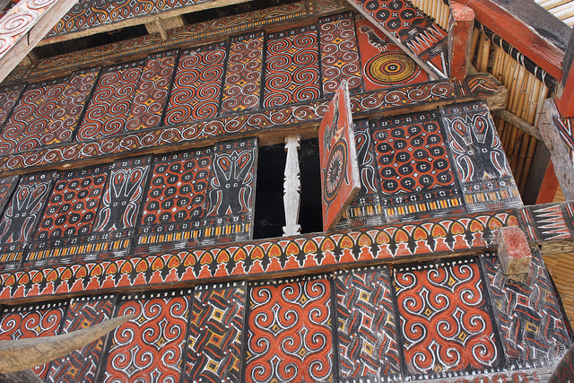 Como los toraja no tienen tradición escrita, una forma de transmitir conocimientos y costumbres es a través de los dibujos de las tallas en madera, que se convierten, a la vez, en una manifestación cultural. En el exterior de las casas es frecuente encontrar cuernos de búfalo colgados en la fachada, símbolo de riqueza y prestigio social de sus dueños.