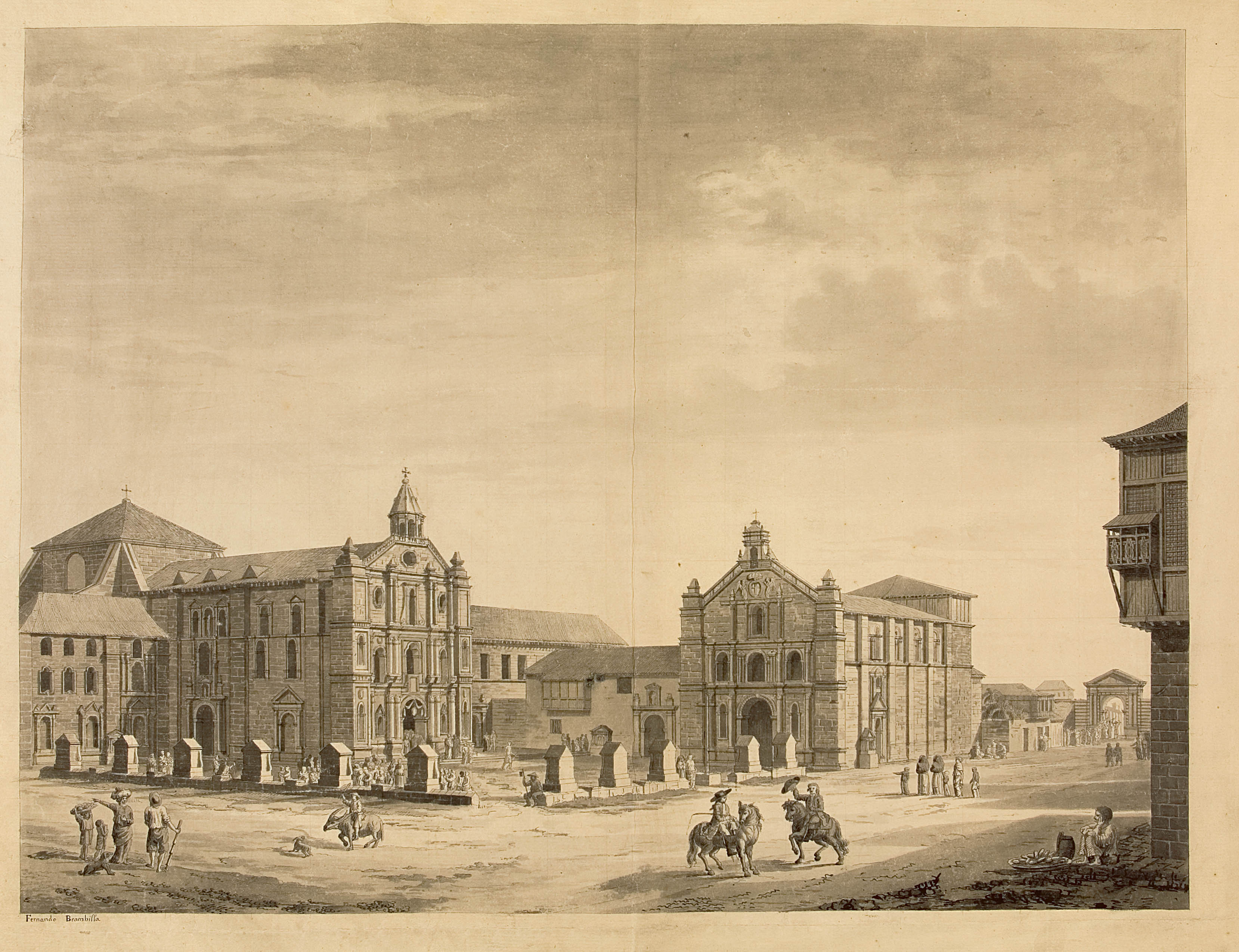 Una plaza de Manila (Filipinas). Ilustración de Malaspina (S. XVIII).