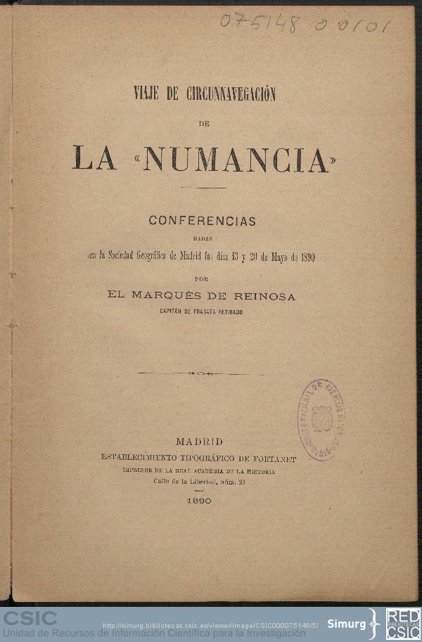 – Viaje de circunnavegación de la ‘Numancia’, de Fernando Calderón y Collantes, 1890.