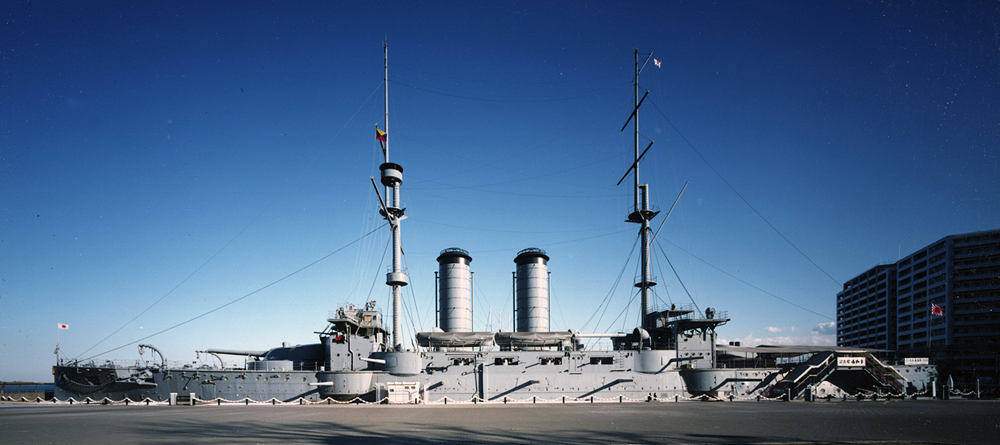 El acorazado pre-Dreadnought Mikasa, buque insignia del Vicealmirante Togo durante la guerra ruso japonesa, hoy convertido en un museo flotante