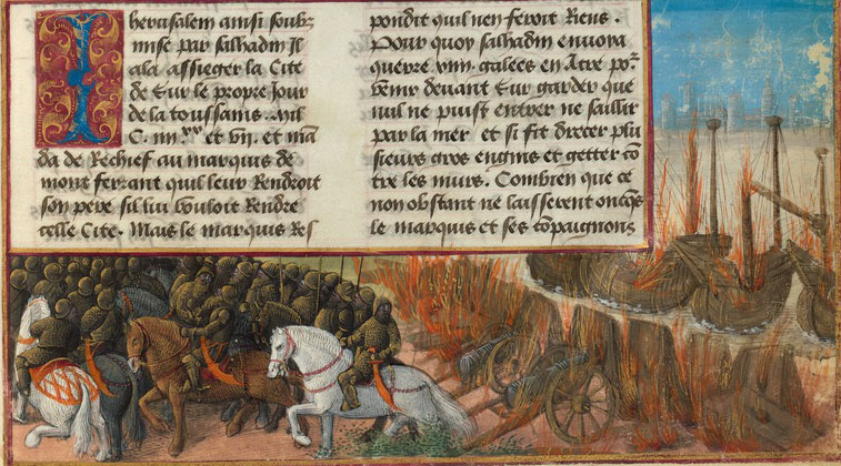 Existe un manuscrito del siglo XV, iluminado con espectaculares secuencias referidas a batallas acontecidas, en las que el mar tiene un protagonismo importante. Se escribió en Francia entre los años 1472 y 1475. Su autor, un clérigo francés, lo redactó por encargo de Louis de Laval, señor de Châtillon.