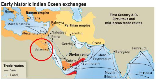 Sin embargo, había una parte del oriente asiático que parecía inmune a los enfrentamientos, y que a partir de ese momento ganó fuerza. Era la ruta oceánica que siglos antes se había abierto para comerciar entre el Egipto faraónico y los señores malabares (de la costa occidental india). Así, los romanos se convirtieron en los herederos directos de esta ruta marítima.