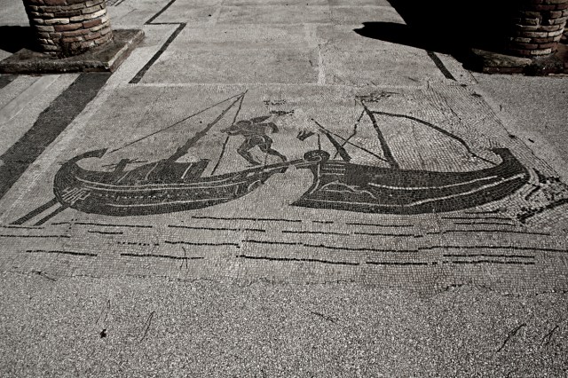 Pero Ostia era un puerto fluvial, nacido en la desembocadura del Tíber (de hecho su nombre deriva del latín ostium, puerta) para abastecer a la todopoderosa ciudad de Roma.