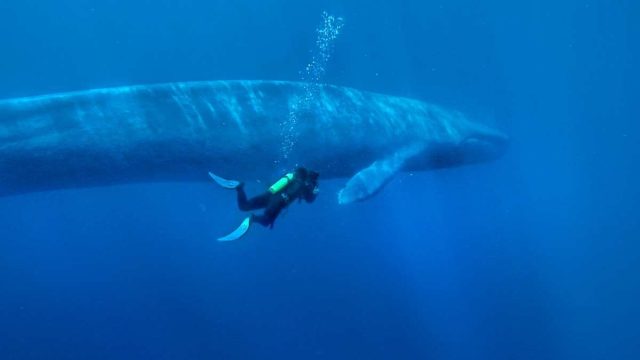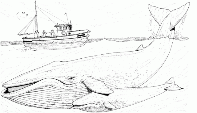 La más grande de todas, la denominada ballena azul, que puede llegar a medir hasta 30 metros, es un peligro para los barcos, ya que chocar con una puede suponer un serio accidente, aparte claro está del daño que supone para el animal y del impacto en el medio marino. A lo largo de la historia estos choques han sido frecuentes, aunque los barcos eran más pequeños que los actuales. Moby Dick es un ejemplo clásico en la literatura del encuentro de humanos con cetáceos.