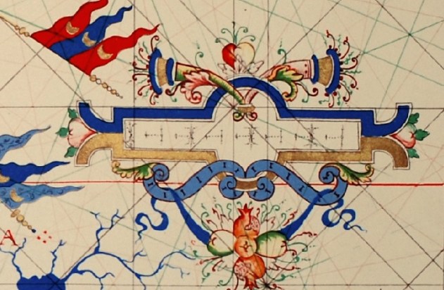 Tronco de leguas decorado. Detalle de una carta portulana del s. XVI. Fuente: BNE