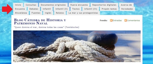 En la web oficial de la Cátedra podrá encontrar en las pestañas superiores, que aparecen en la franja negra, multitud de posibilidades. Destacamos, además, la página «Otros recursos de información» desde la que damos acceso a monografías, publicaciones periódicas, videos, webs, blogs y wikis de temática naval y marítima.