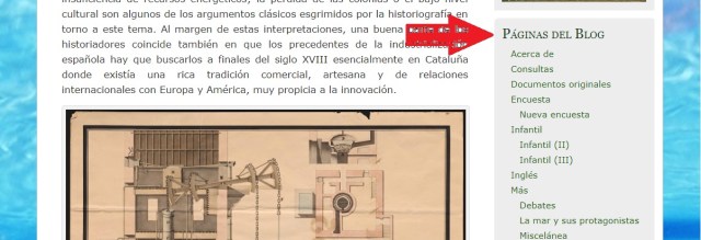 También podrá hallar información en las páginas del blog, que son las pestañas que aparecen en la parte superior de la imagen de la cabecera, como en la web. Tenemos secciones infantiles, fuentes (archivos) y documentos originales, entre otras.