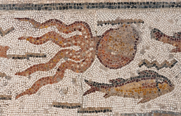 Aunque la fauna marina es relativamente frecuente en mosaicos hispanos, sin embargo, el tema de la pesca no fue muy utilizado. De hecho, algunos mosaicos similares a éste se pueden hallar en el Norte de África (en Carthago, Leptis Magna y Hadrumetum).