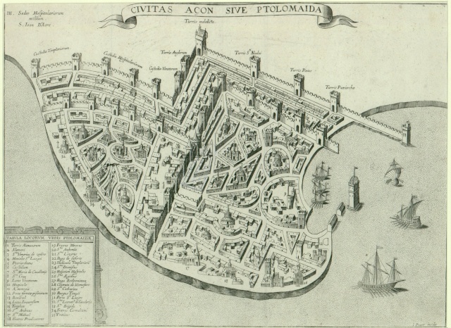 El nombre de Akko aparece por primera vez en la tablillas de Ebla, entre los años 2400–2250 a.C. Se cita en los textos egipcios (Amarna) y en la Biblia. También se llamó Tolemaida. Fue puerto de enorme importancia en la época antigua y medieval, y de hecho ha funcionado como tal durante cinco milenios. Acre era la ciudad de los caballeros hospitalarios, que luego se llamarían de San Juan (algunos oficiales de la Armada del siglo XVIII eran caballeros de esta orden). Pero también había fortalezas del resto de órdenes cruzadas, como los templarios o los caballeros teutónicos.