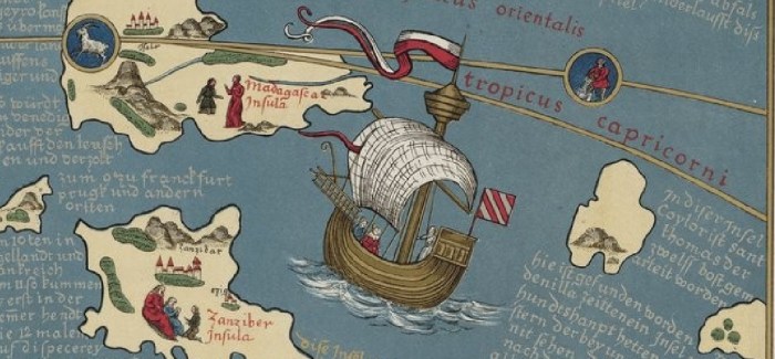 Una nave cerca de Madagascar en el globo de M. Behaim (S. XV). Fuente