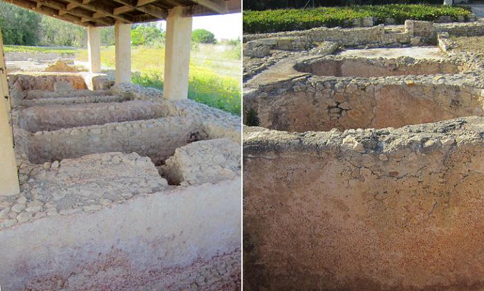 También se hallaron las ruinas de una fábrica de pescado, donde se encontraron ánforas llenas de restos de garum, espinas, fragmentos de vértebras y diminutas cabezas de alevines.