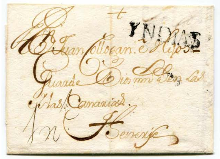 Sabemos que entre 1723 y 1764 el servicio de correspondencia transatlántica era gratuito en ambos sentidos. A partir del año 1764 se establecieron unas tarifas que se basaban en el peso y la distancia recorrida por la misiva. Para determinar el origen y destino de las cartas transportadas por el correo marítimo se crearon tres tipos de cuños: ESPAÑA, YNDIAS e YSLAS, que debían aplicarse en los puertos de salida.