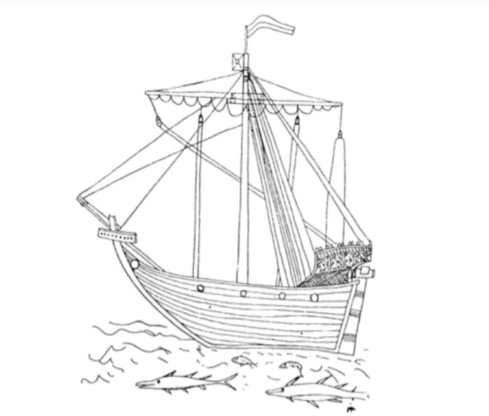 Estaban provistas de castillos a proa y popa, que en caso de guerra se protegían con paveses de mimbre recubiertos de cuero o falcas de madera, desde donde se combatía al enemigo.