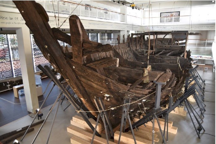 Esta nave ha sido sacada del lecho en el que se descubrió y está expuesta en un museo de la ciudad.