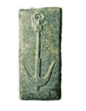 Previas a éstas hubo de dos tipos, que se parecían muy poco en la forma de lo que hoy llamamos moneda (que suele ser similar a un disco). Eran las aes rude y las signatum. De estas últimas hemos rescatado dos imágenes que presentan temas marítimos, como un ancla (a la izquierda) y delfines junto a dos tridentes (a la derecha).