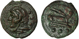 En el siguiente (triens), aparecía Minerva (diosa de la sabiduría) y a veces también Roma, con el reverso de una proa y la marca de 4 puntos correspondientes a su valor. El quadrans tenía acuñada la imagen de Hércules (el poderoso), portaba la proa y tres puntos en la otra cara.