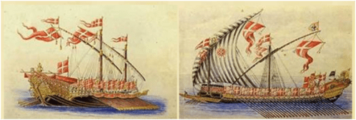 El número de embarcaciones varió a lo largo del tiempo. Se sabe que en 1700 la flota contaba con 7 galeras, aunque con los años éstas disminuyeron en favor de otras naves mancas.