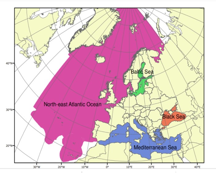 Podemos distinguir cuatro grandes regiones marítimas, que son las del Mar Negro, Mediterráneo, Atlántico, y Báltico.
