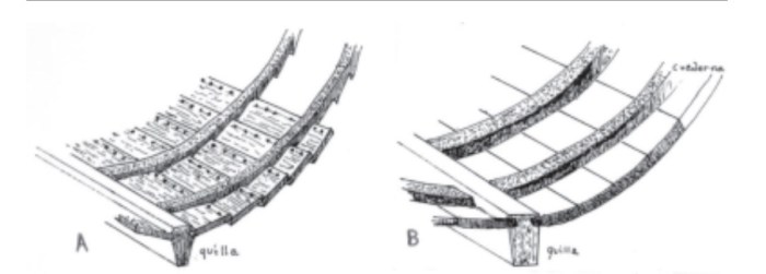 Precisamente fue el orden de instalación de los principales elementos de la estructura (sobre todo el forro externo y las cuadernas), el que ahora nos sirve para determinar los distintos sistemas de construcción naval que han ido evolucionado desde los primeros tiempos.
