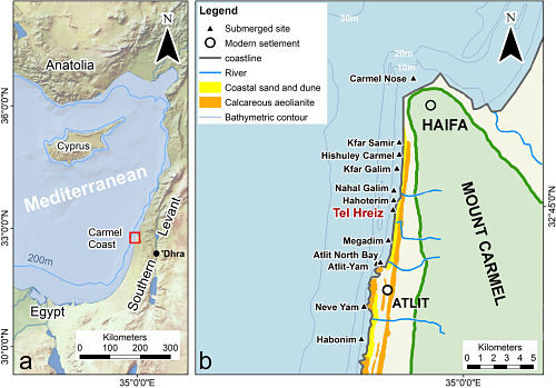 Un puerto muy antiguo es el de Tel Hreiz, en el Este del Mediterráneo, en la costa del Monte Carmelo. En sus orillas se levantaron pequeñas aldeas neolíticas cuyos habitantes se dedicaban a la agricultura, el pastoreo, la caza y la pesca. Se tiene noticia de que hace unos 7000 años se establecieron allí y que, ante la posibilidad de que las aguas anegaran la costa, sus habitantes construyeron un muro, a modo de malecón, que los protegiera.