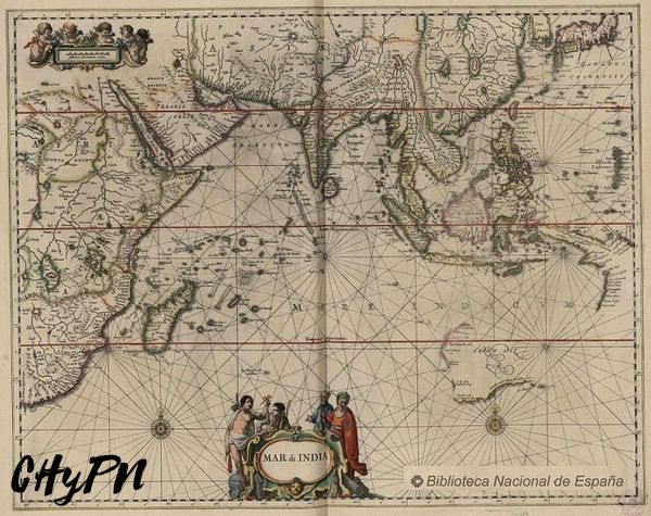 Este magnífico atlas, conocido como «Waterwereld’ en alemán y «waterworld» en inglés, que se ocupa de cartografiar los mares, está digitalizado y disponible en la web de la Biblioteca Nacional de España (es la segunda edición, de 1657).