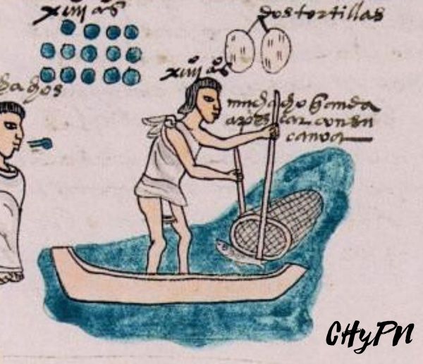 Como parte de su modo de vida se hacía uso de pequeñas canoas, necesarias para varios trabajos habituales. En una de las ilustraciones se puede observar un joven que se encarga de acarrear piedras con su pequeña embarcación para la reparación del templo (teocalli), tarea que formaba parte del trabajo comunitario que debían llevar a cabo.