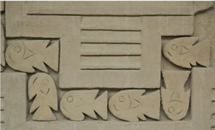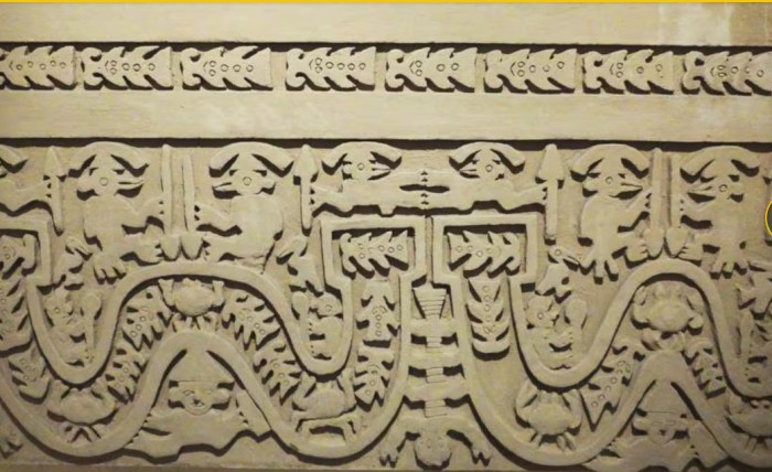 Existen varias interpretaciones para las figuras esculpidas en los muros de las huacas (edificios sagrados), que en su mayoría son peces. Unas sostienen que estos muestran las dos corrientes marinas más importantes de la zona, la de Humboldt y la del Niño que, como puede verse en la imagen siguiente, van en direcciones opuestas.