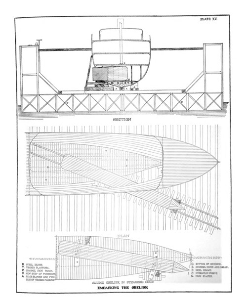 1º) Tuvieron que buscar, asegurar y equipar especialmente un barco para el transporte del obelisco. Eligieron un vapor que estaba en el puerto de Alejandría. Tenía el tamaño suficiente, y podía servir para la tarea haciendo algunos arreglos. Era el Dessoug, que se había construido en 1864 por Denton, Gray & Co., en Hartlepool (Gran Bretaña) para el Gobierno de Egipto.