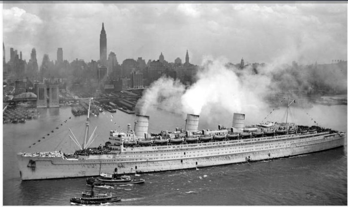Inicialmente cubría la ruta atlántica entre Gran Bretaña y Estados Unidos. Formaba parte de la flota de la empresa naviera Cunard. En el mismo año de su botadura (1936) consiguió una de las preciadas banderas azules, por ser el más rápido en hacer esta travesía. Tenía 311 m de eslora y 36 m de manga.