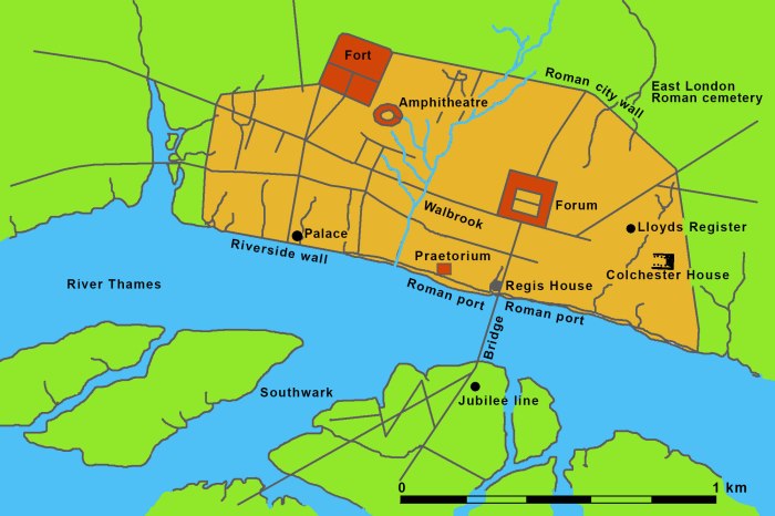 El Támesis ofrecía un espacio protegido, muy adecuado para una flota, por lo que Londinium se convirtió en el puerto de Roma en Britania. De hecho, sirvió como un centro comercial de especial relevancia hasta su abandono durante el siglo V.