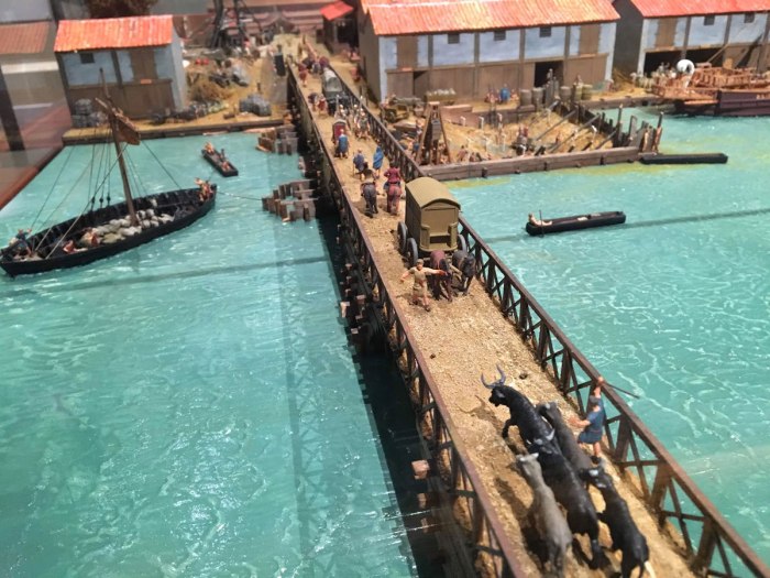 Allí construyeron un puente de madera sobre el río, en el año 43, justo aguas abajo del actual puente de Londres. Tras el incendio de la ciudad se volvió a construir otro enorme, que medía unos 300 m.