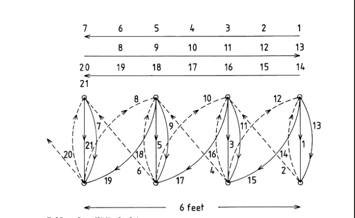 El cosido se fue haciendo más complejo, tal y como se muestra en el dibujo siguiente: