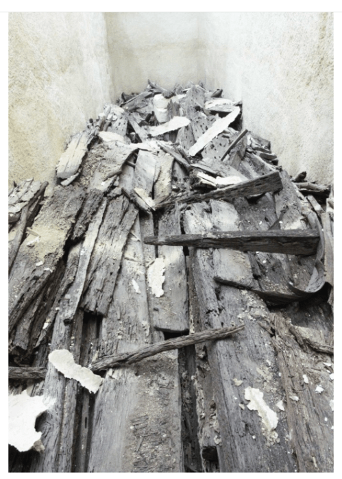 El castillo de proa se construyó con madera del árbol de espina de Cristo, que se usaba habitualmente para hacer vigas transversales en la construcción de barcos en el Imperio Antiguo egipcio.