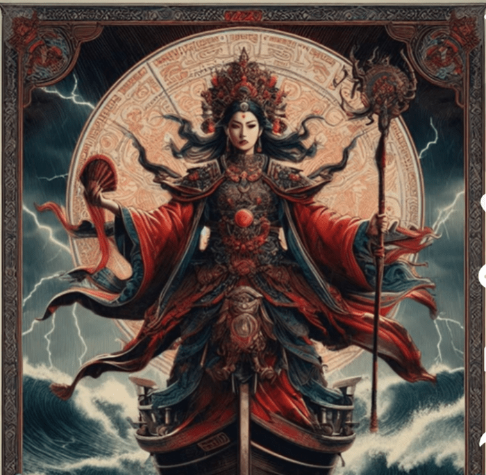 Se cuenta que en tiempos antiguos, durante la dinastía Song, en la isla de Meizhou, costa de Fujian (China), en el siglo X, había una mujer llamada Lin Mo, hija de un pescador, de la que decían que era una hechicera, que podía predecir el tiempo.