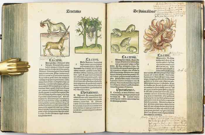 Aquí vamos a analizar cómo se veían estos animales, tanto los más conocidos como otros de los que se tenía noticia, pero que no se conocían, incluyendo los seres mitológicos medievales. Se titula Hortus sanitatis y desconocemos el nombre de su autor.