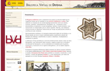 A finales del año 2012 se presentó la Biblioteca Virtual de Defensa, un portal corporativo ministerial que ofrece una serie de obras que forman parte del inmensamente rico patrimonio que se custodia en las instituciones documentales del Ministerio de Defensa. Es un repositorio digital, ya que las obras que contiene están a texto completo y son de acceso libre y gratuito.