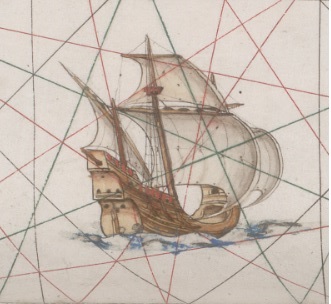 Un navío dibujado en las aguas del O. Atlántico. Atlas Vallard